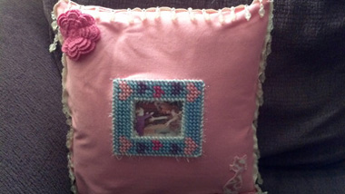 Avi: "I remember Grammy teaching me how to cross-stitch. Can we make a pillow that reminds me of Grammy so that when I miss Grammy I can hug it and think of her?"