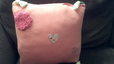 Avi: "I remember Grammy teaching me how to cross-stitch. Can we make a pillow that reminds me of Grammy so that when I miss Grammy I can hug it and think of her?"